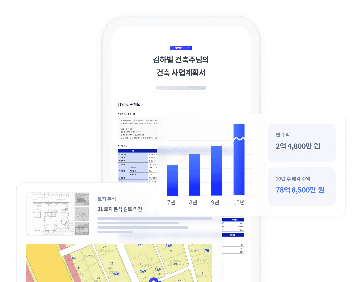 - 건축을 시작할 때 원하는 목표에 맞는 실현가능한 사업계획서를 하우빌드와 만들 수 있습니다.