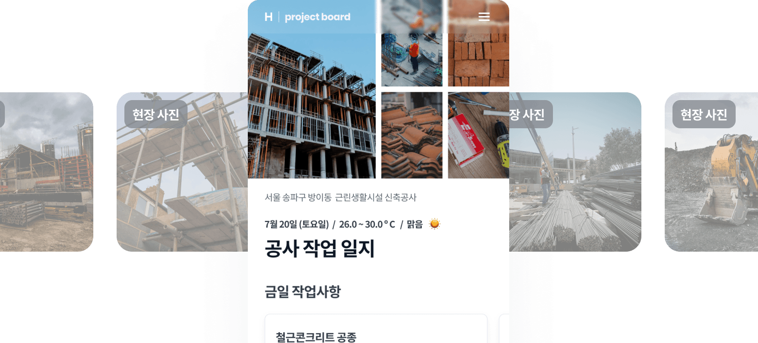 공사비 관리, 진행 현황, 공정률 등 공사 현장에 필요한 모든 업무를 한눈에 확인해 보세요