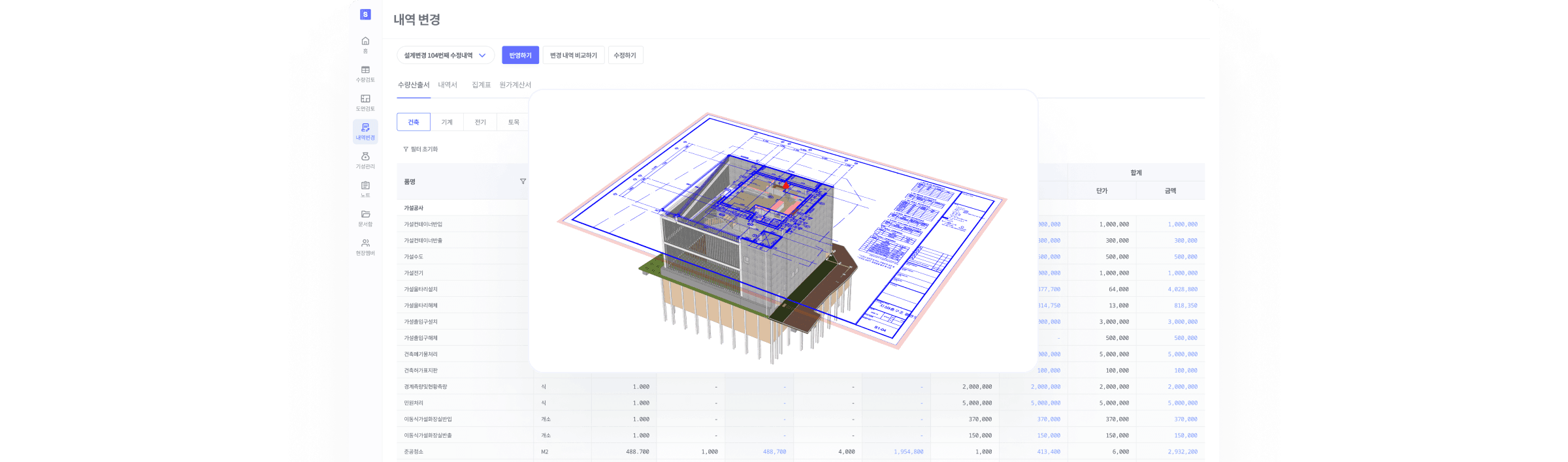 3D BIM으로 공사에 포함될 자재 수량을 하나씩 확인할 수 있어요 3D BIM으로 내 건물을 미리 체험할 수 있고 공사에 포함될 자재 수량을 하나씩 확인할 수 있어요